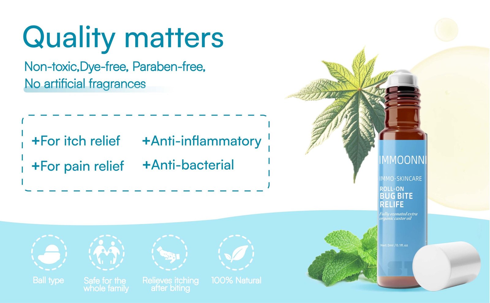 - Efficace sollievo dal prurito: Una miscela di olio di ricino accuratamente selezionato e ozono ad alta purezza consente all'ossigeno attivo di colpire il sito del morso, neutralizzando rapidamente le tossine che causano il prurito e alleviando efficacemente arrossamenti, gonfiori e prurito. Le potenti proprietร antiacide e antinfiammatorie dell'acido ricinoleico prevengono le infezioni secondarie causate dal grattamento.